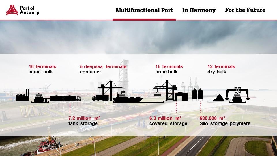 In een beperkt aantal slides brengen we het brede verhaal van Havenbedrijf Antwerpen op een krachtige manier